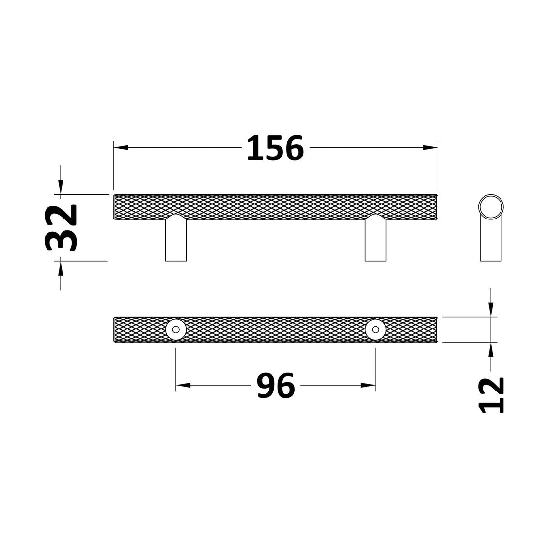Knurled Bar Furniture Handle, 156mm Wide With 96mm Centres - Matt Black