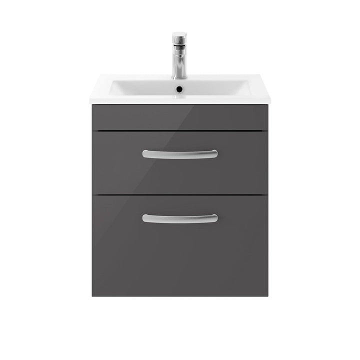Cape 500mm Wall Hung 2 Drawer Vanity Unit & Minimalist Basin - Gloss Grey