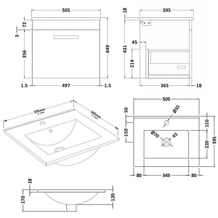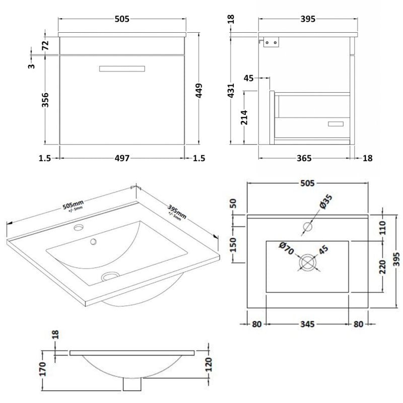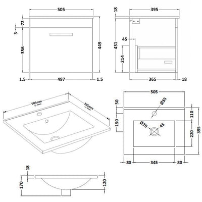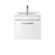 Cape 500mm Wall Hung Single Drawer Vanity Unit & Minimalist Basin - Gloss White