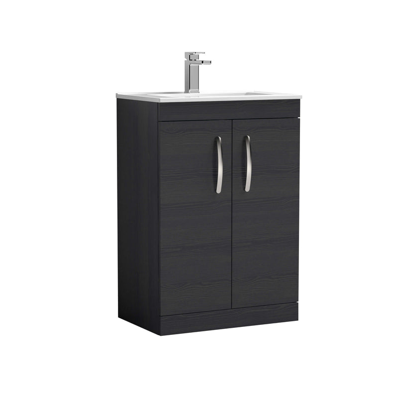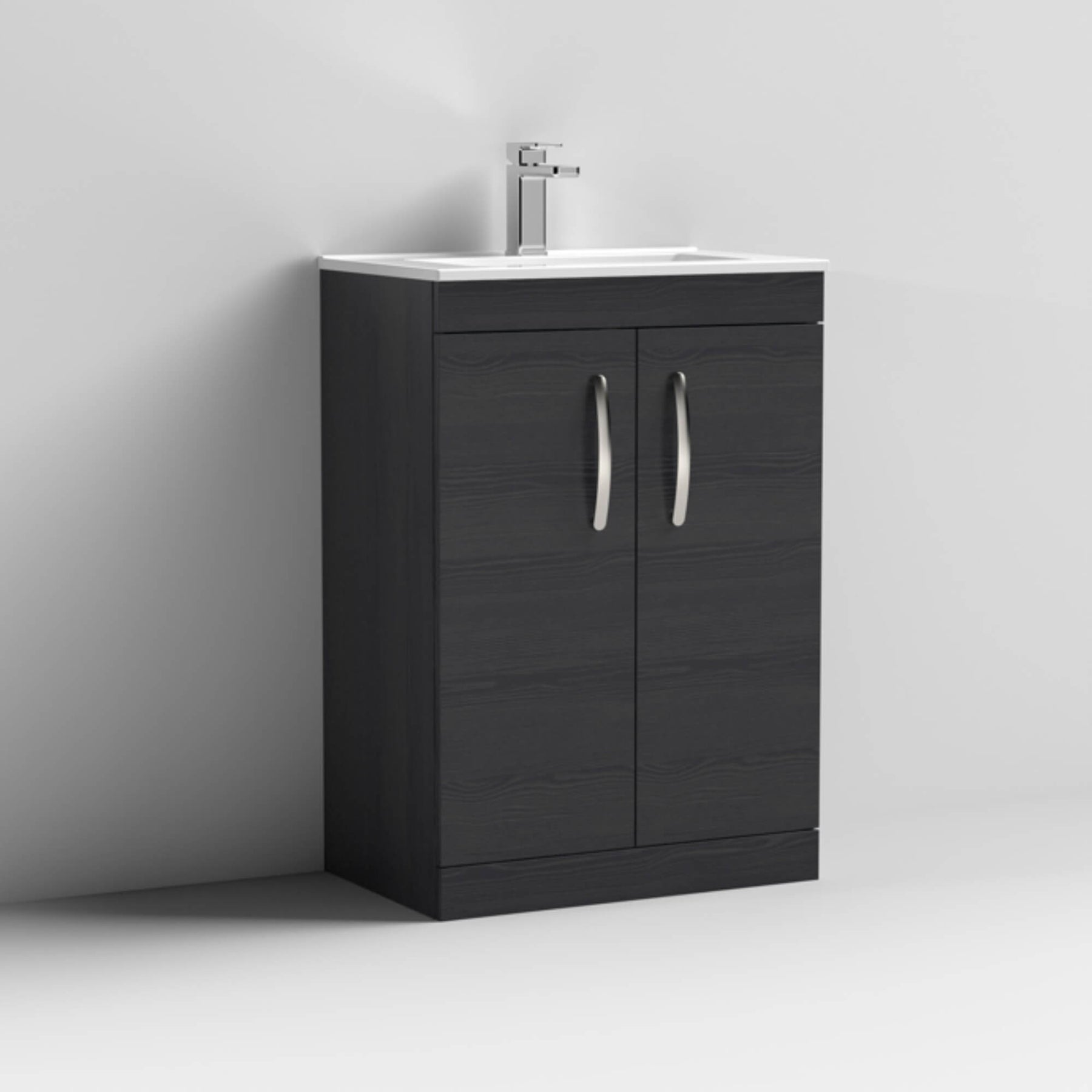 Cape 600mm Floor Standing 2 Door Vanity Unit & Minimalist Basin - Charcoal Black