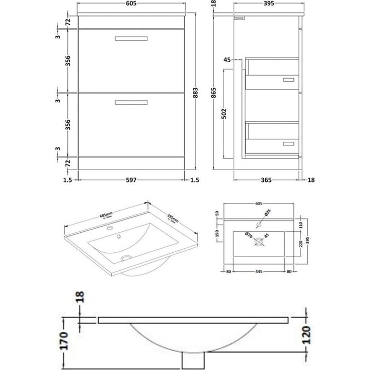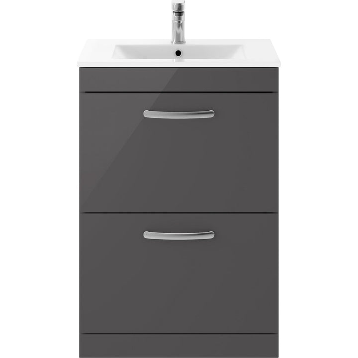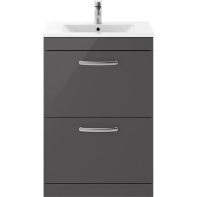 Cape 600mm Floor Standing 2 Drawer Vanity Unit & Minimalist Basin - Gloss Grey