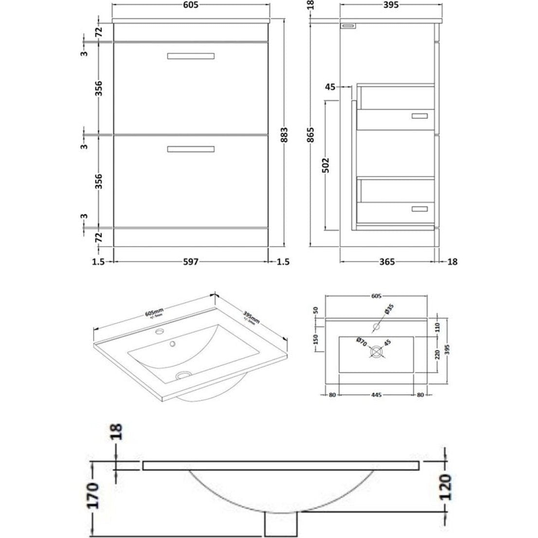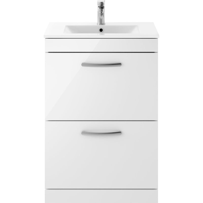 Cape 600mm Floor Standing 2 Drawer Vanity Unit & Minimalist Basin - Gloss White