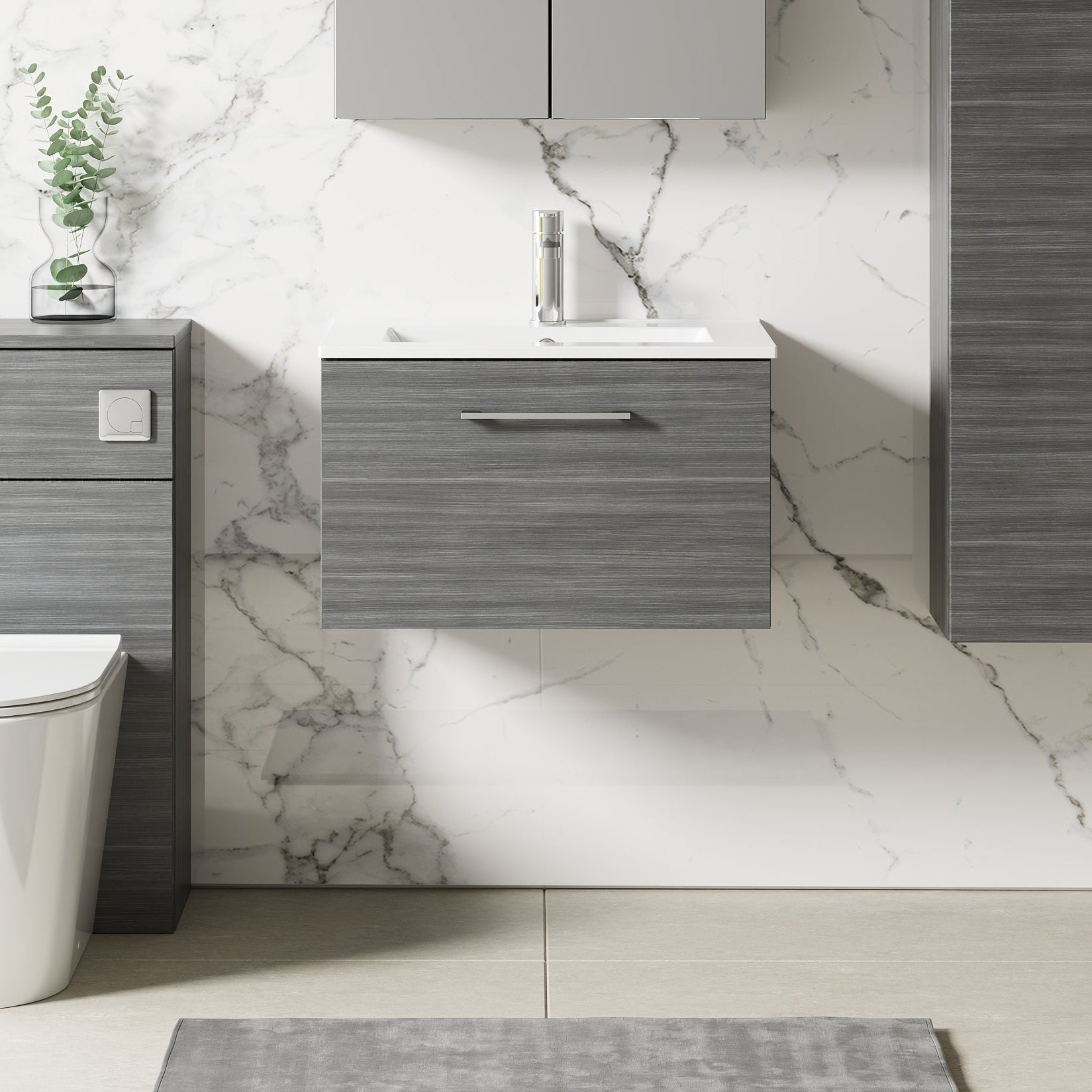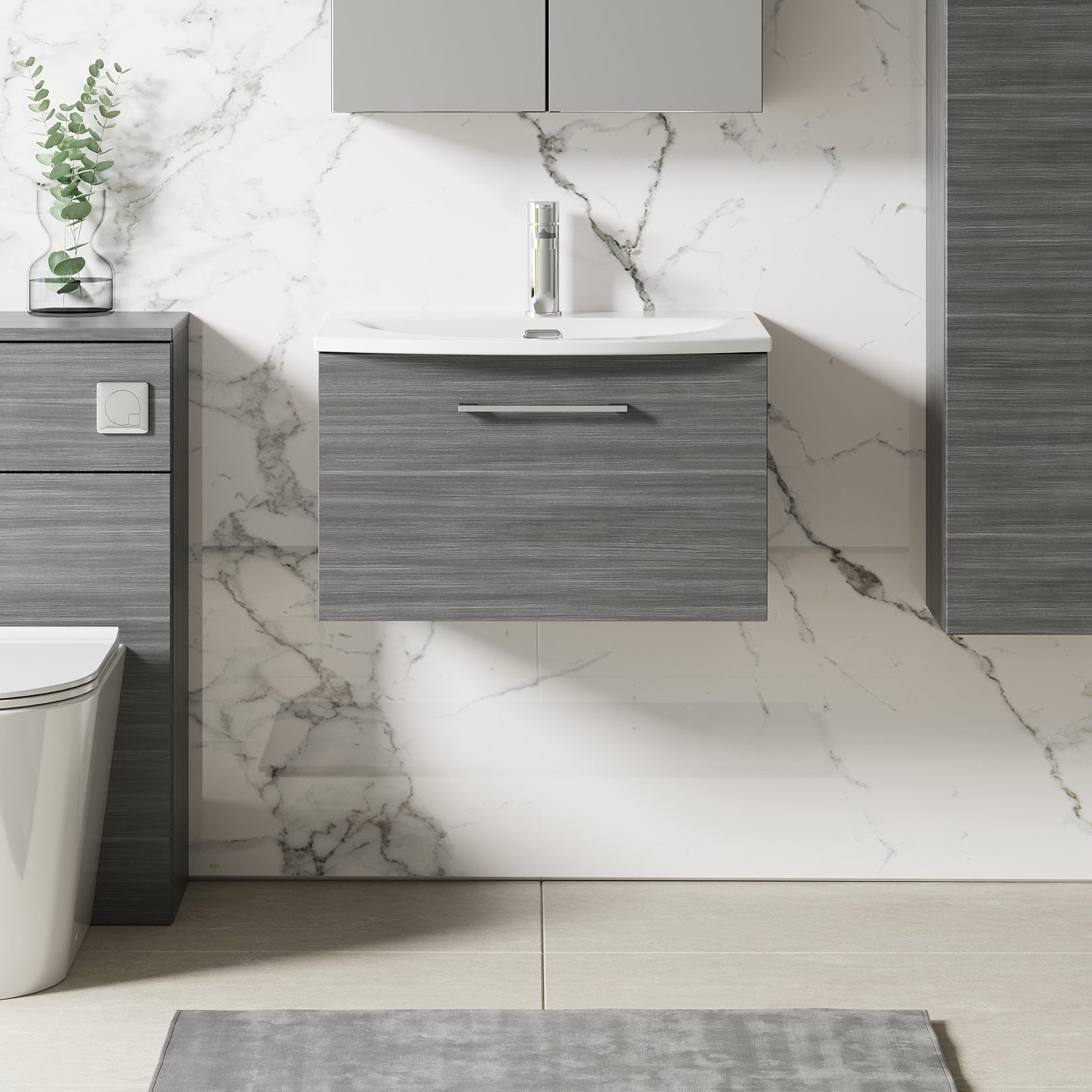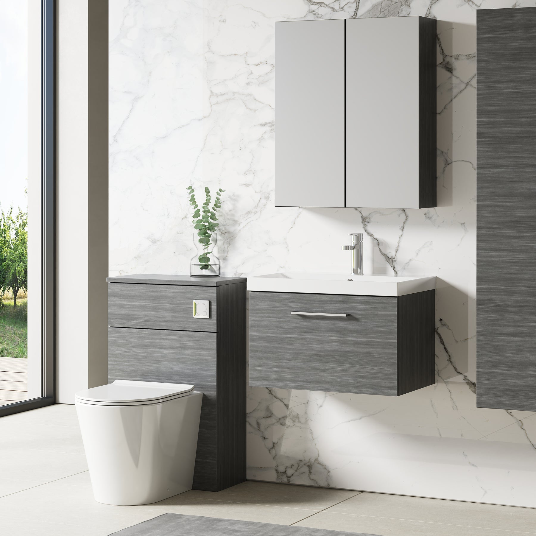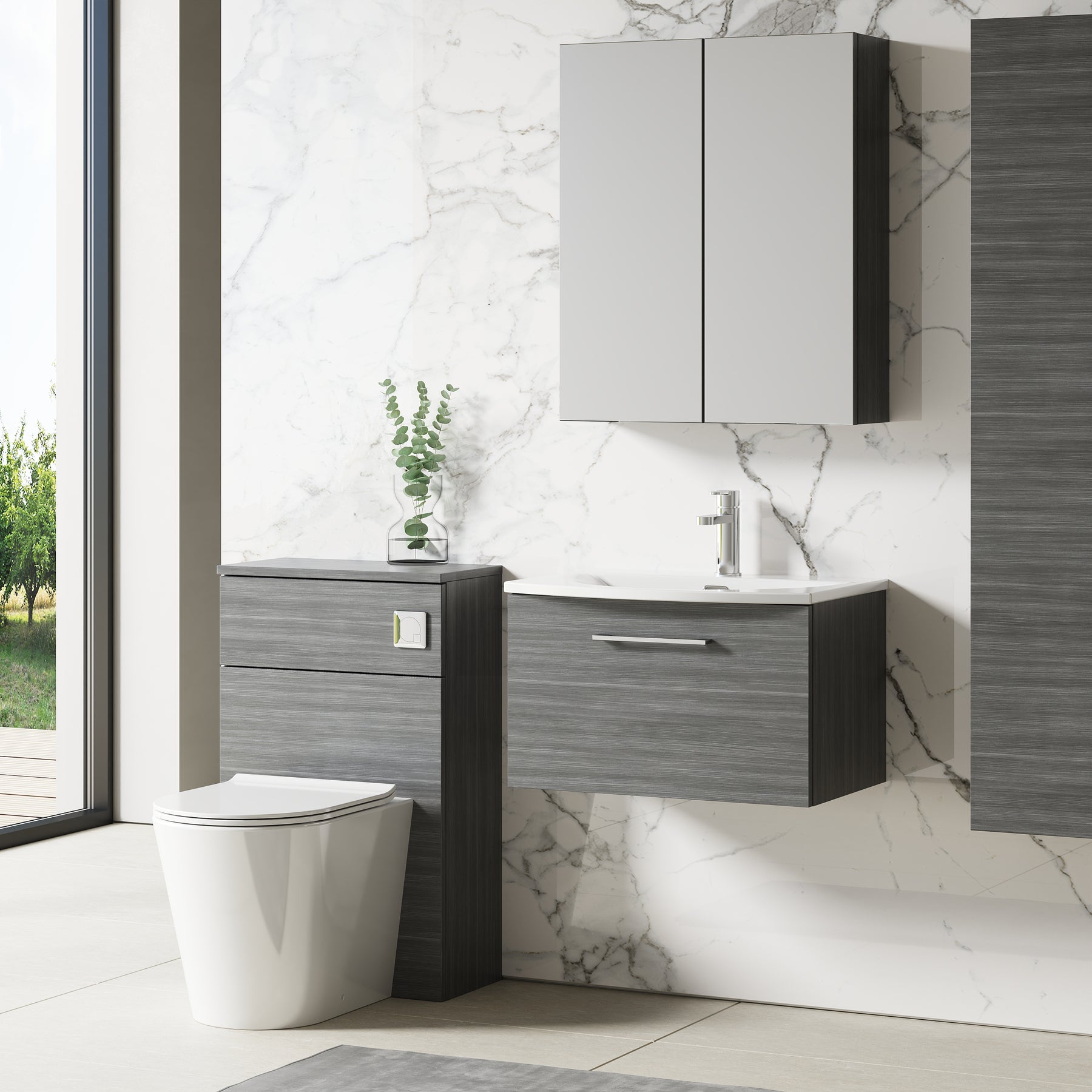 The Lana bathroom furniture collection features a sleek contemporary design that is available in a vast range of popular finishes and sizes – making it a great choice for modern bathrooms. Arno furniture is supplied with chrome handles that can be changed for alternative black or brass handles and can be paired with matching storage furniture and bath panels for a coordinated theme.