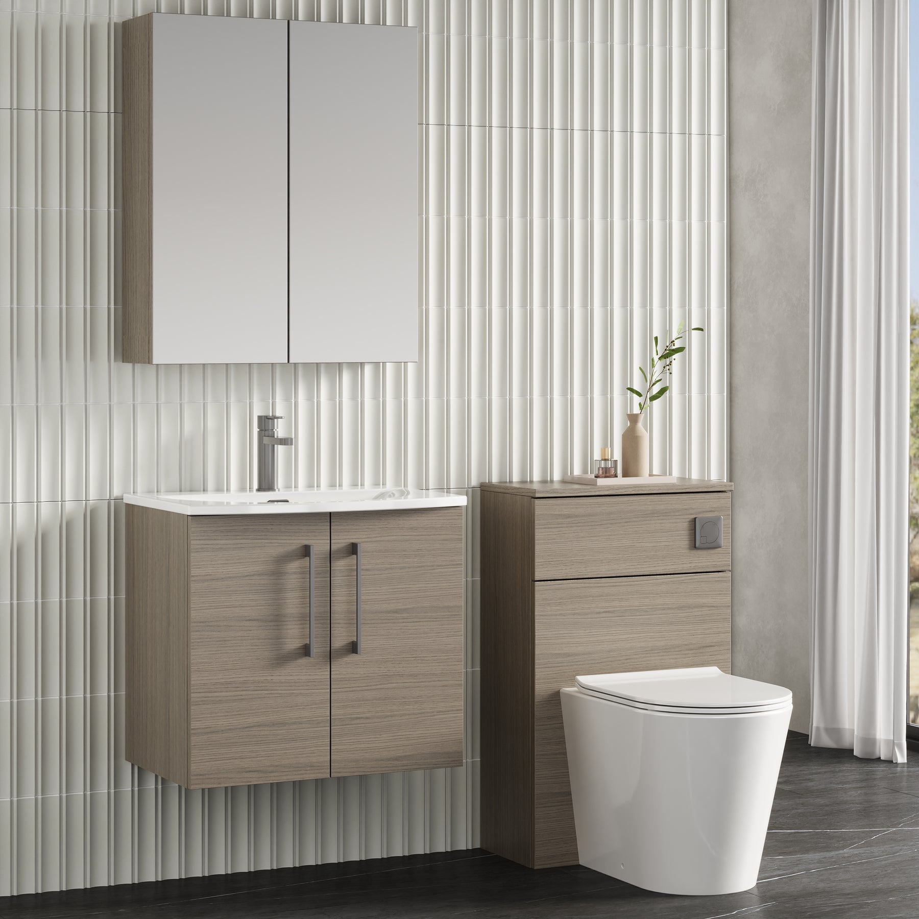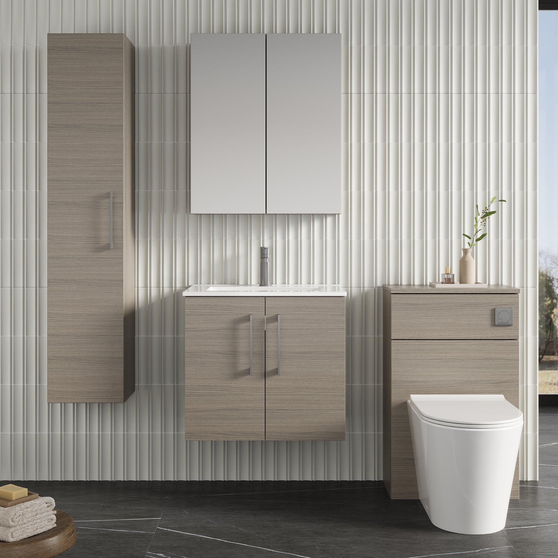 The Lana bathroom furniture collection features a sleek contemporary design that is available in a vast range of popular finishes and sizes – making it a great choice for modern bathrooms. Arno furniture is supplied with chrome handles that can be changed for alternative black or brass handles and can be paired with matching storage furniture and bath panels for a coordinated theme.
