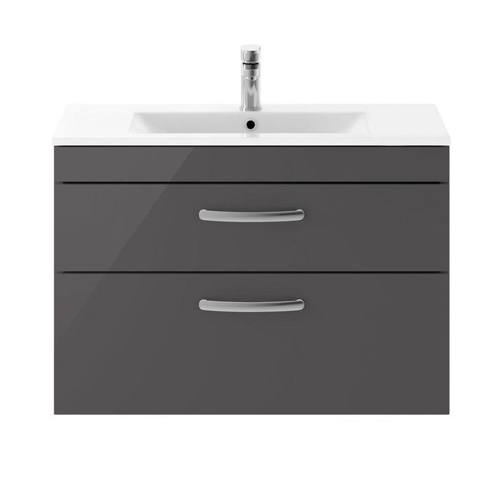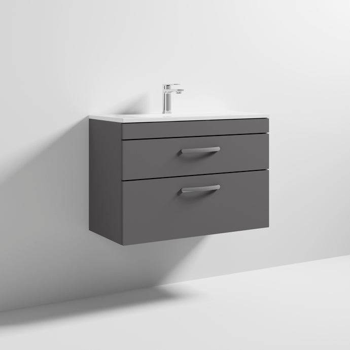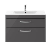 Cape 800mm Wall Hung 2 Drawer Vanity Unit & Minimalist Basin - Gloss Grey