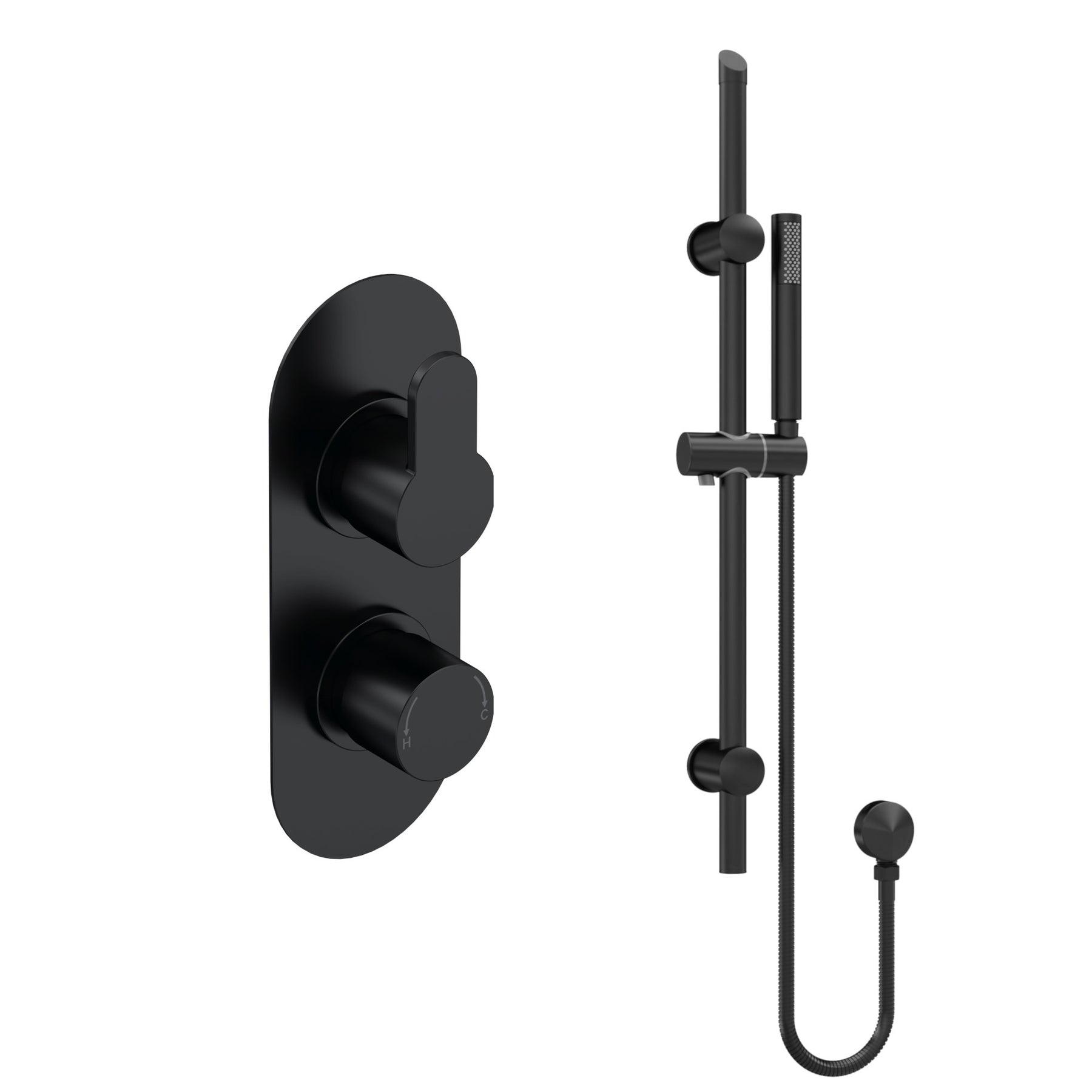 With a contemporary rounded design and a stylish matt black finish, the Lana Black concealed shower set will certainly catch the eye. The kit includes a concealed thermostatic valve and a sliding rail kit that has height adjustment for easy showering. The concealed valve allows you to easily control water flow and temperature to the rail kit and as it is thermostatic it will maintain a steady temperature even if other taps are turned on elsewhere in the house. The shower kit requires a minimum of 0.5 bar pressure to operate so is suitable for pumped systems or high pressure systems such as a combi-boiler or unvented system (such as a Megaflo).
