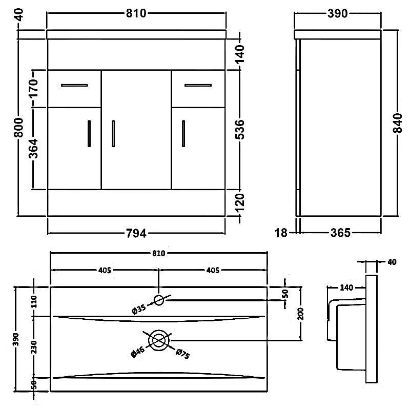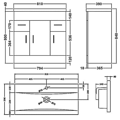 The Lomond vanity unit comes complete with a ceramic basin that has a modern angular design and features a chunky 40mm thick edge. It comes with 1 tap hole (suitable for standard sized basin mixers) and has an overflow to stop the basin from over-filling (suitable for slotted or universal basin wastes). The Lomond vanity unit and basin is backed up by a 5 year guarantee.