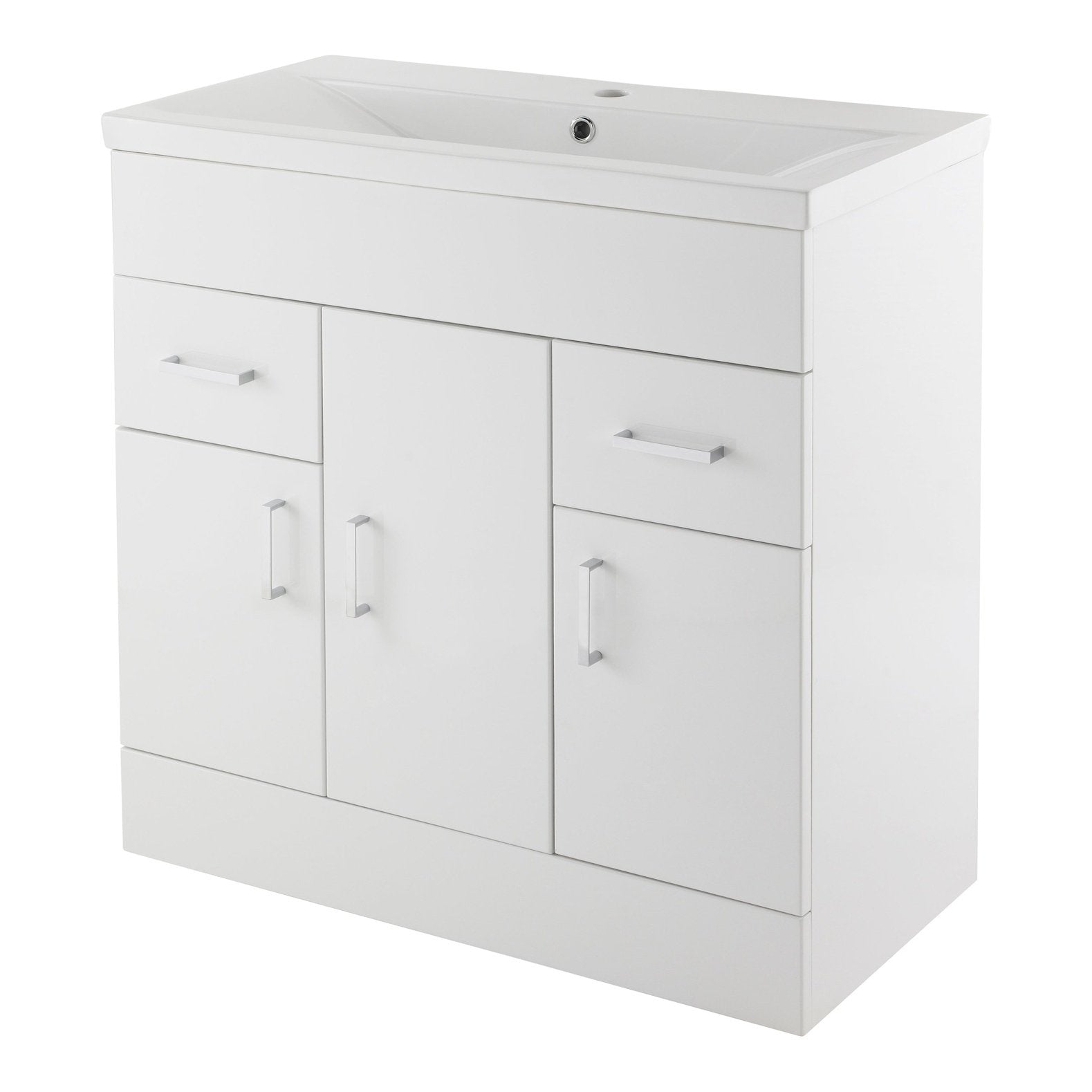 Lomond 800mm Floor Standing Vanity Unit & Mid-Edge Basin - Gloss White