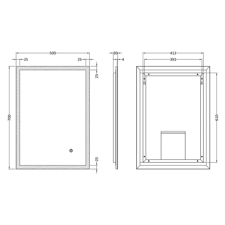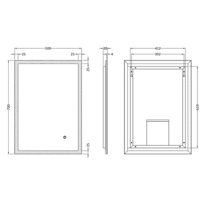 Lumin 500 x 700mm LED Touch Sensor Mirror With Ambient Lighting & Demister