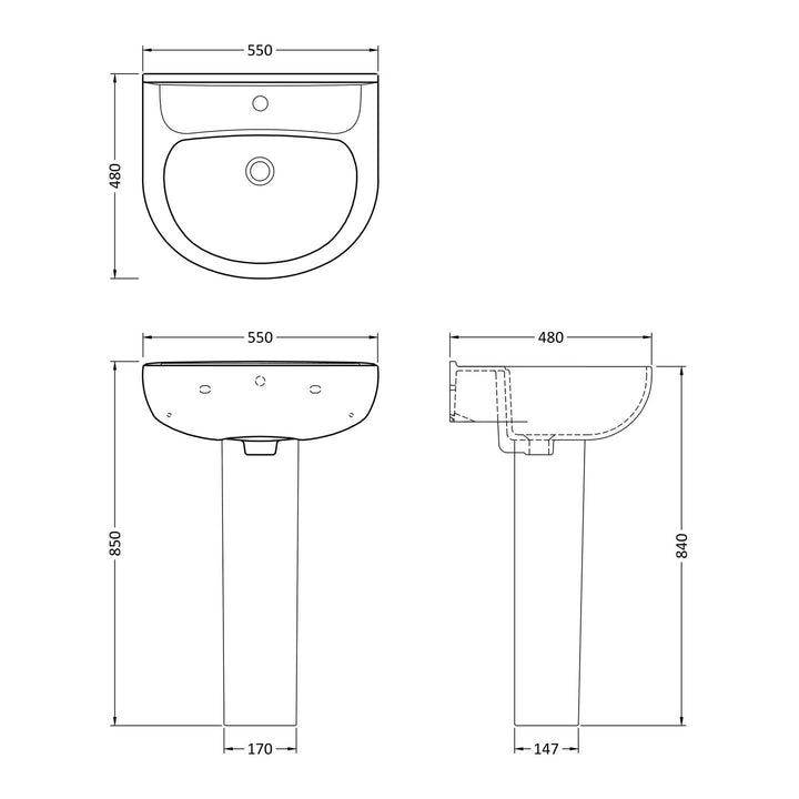Offering fantastic value for money, the Marina 550mm basin features a classically rounded style. The basin measures 550 x 480mm, so it offers plenty of practical washing space. The basin features 1 tap hole, making it suitable for standard sized basin mixer taps.