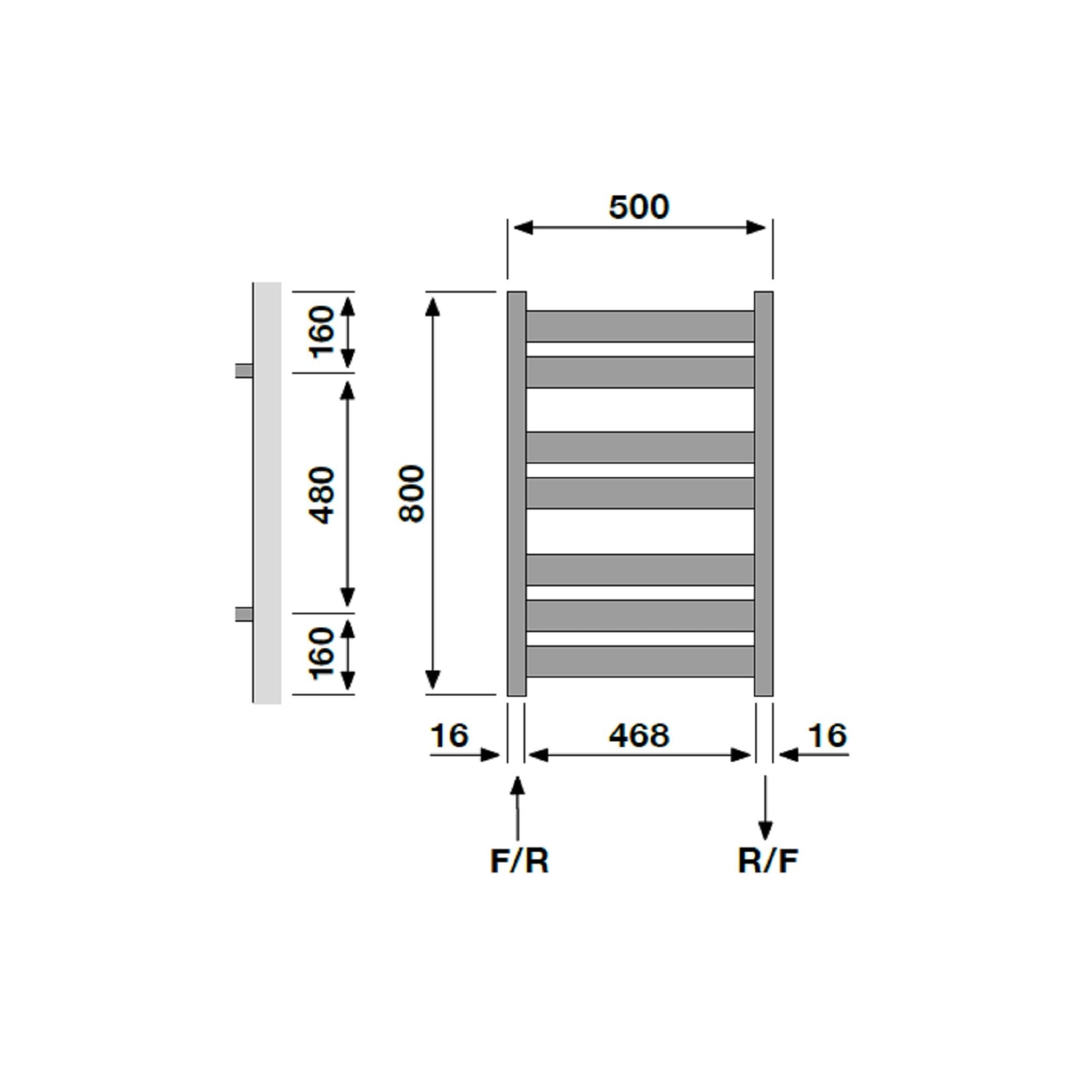 The towel rail is for central heating systems, but it is also available as a dual fuel model which includes an electric element that allows you to run it off electricity when your central heating system is turned off. You will need valves for installing the radiator (sold separately), with lots of matching valves available. If your pipes come from the wall, choose angled or corner valves and if your pipes come from the floor you will need straight valves. Manual valves allow you to isolate and turn the radiator on or off, alternatively you can choose thermostatic valves which allow you to adjust the temperature specifically for the radiator.