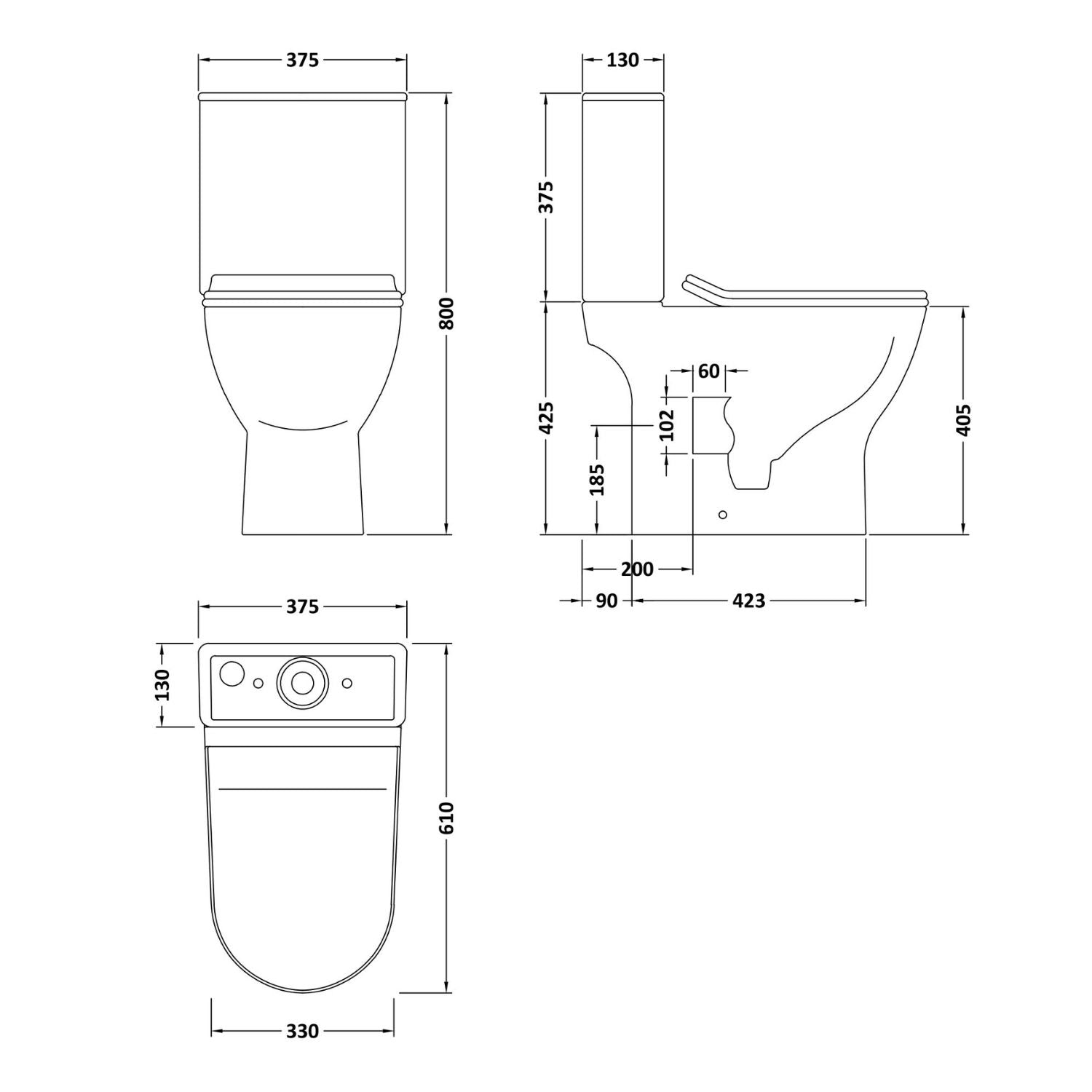 Nuie Freya Compact Rimless Toilet & Soft Close Seat - 610mm Projection