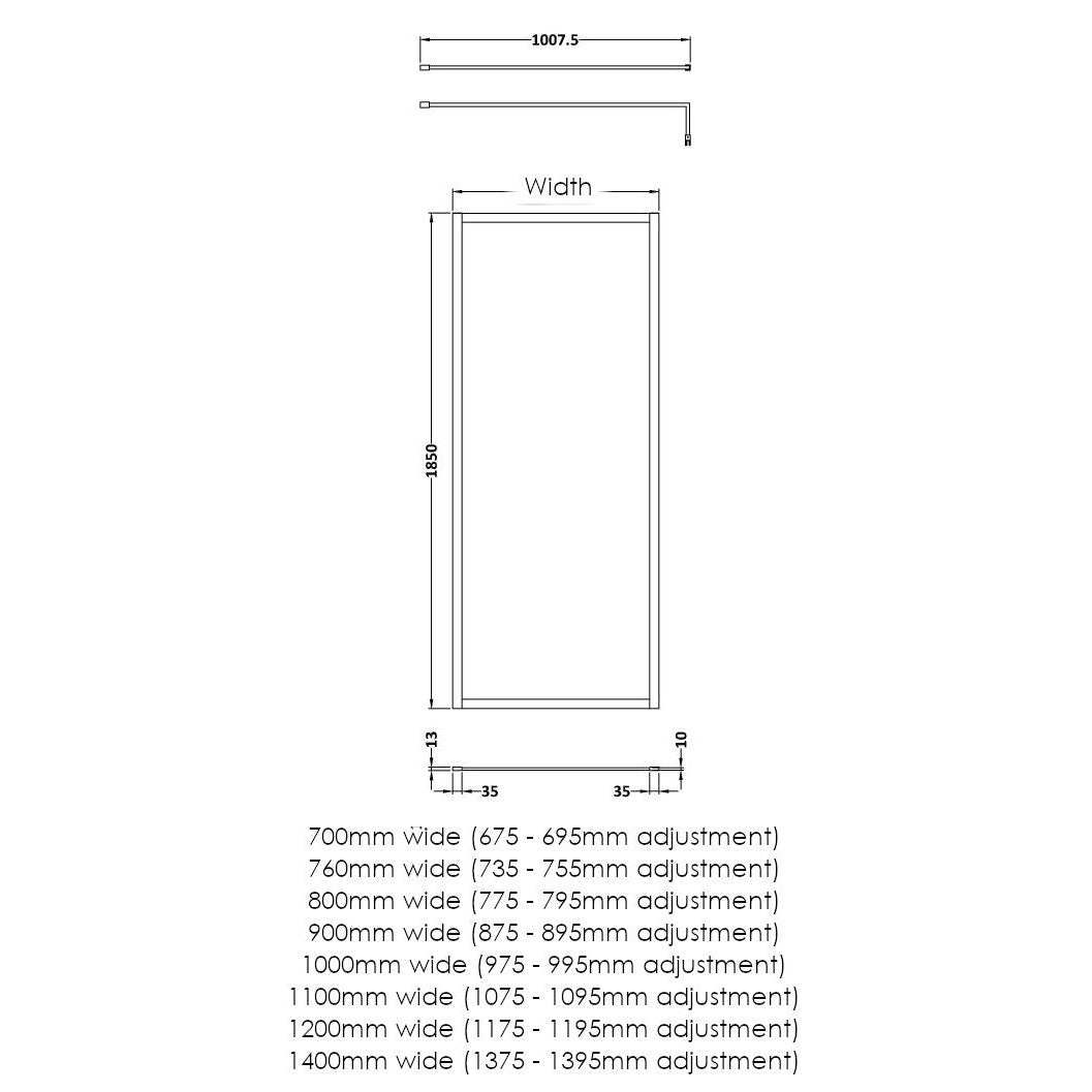 - 1100mm wide (1075 - 1095mm adjustment)