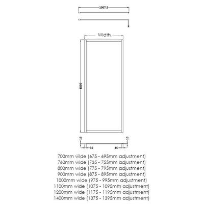 - 1200mm wide (1175 - 1195mm adjustment)