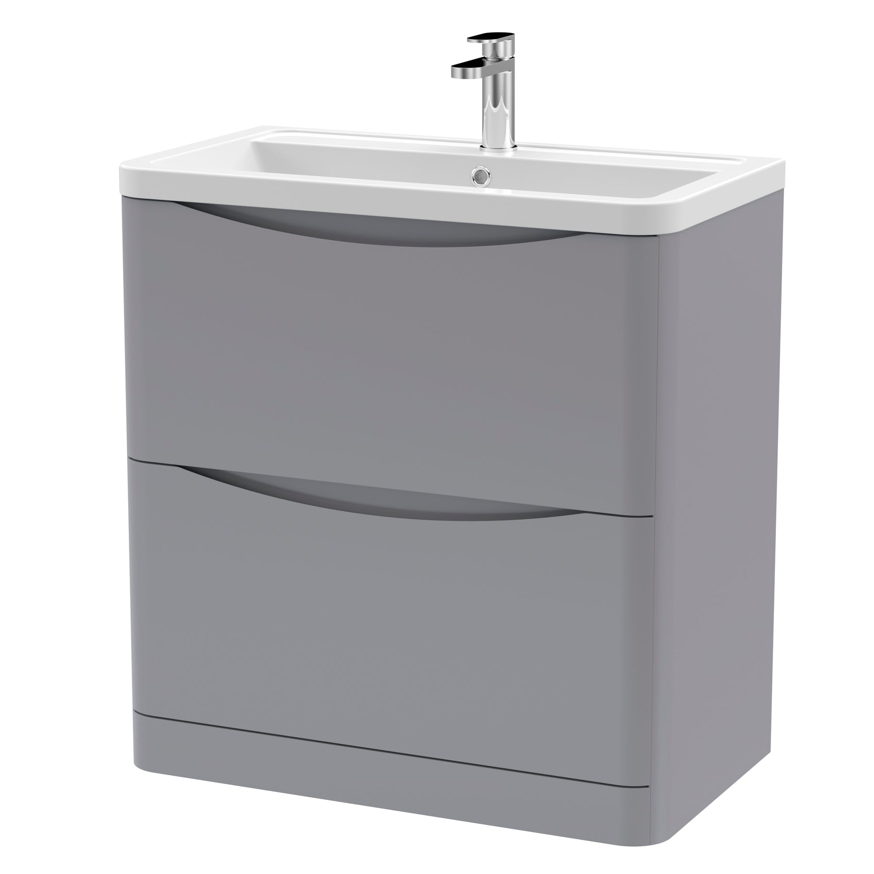 Nuie Lunar bathroom furniture features a luxurious rounded design and handleless drawers for a contemporary chic style. Choose from a selection of gorgeous satin finishes in wall hung or floorstanding options.