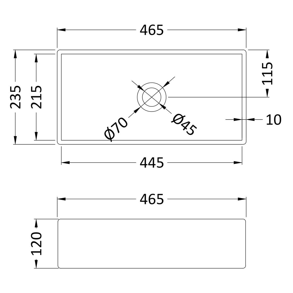 Nuie Luxe Vessel Rectangular Basin 465 x 235mm - Matt Black