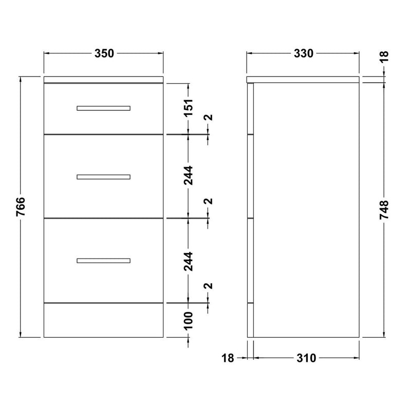 Nuie Mayford 766 x 350 x 330mm Floor Standing 3 Drawer Unit - Gloss White