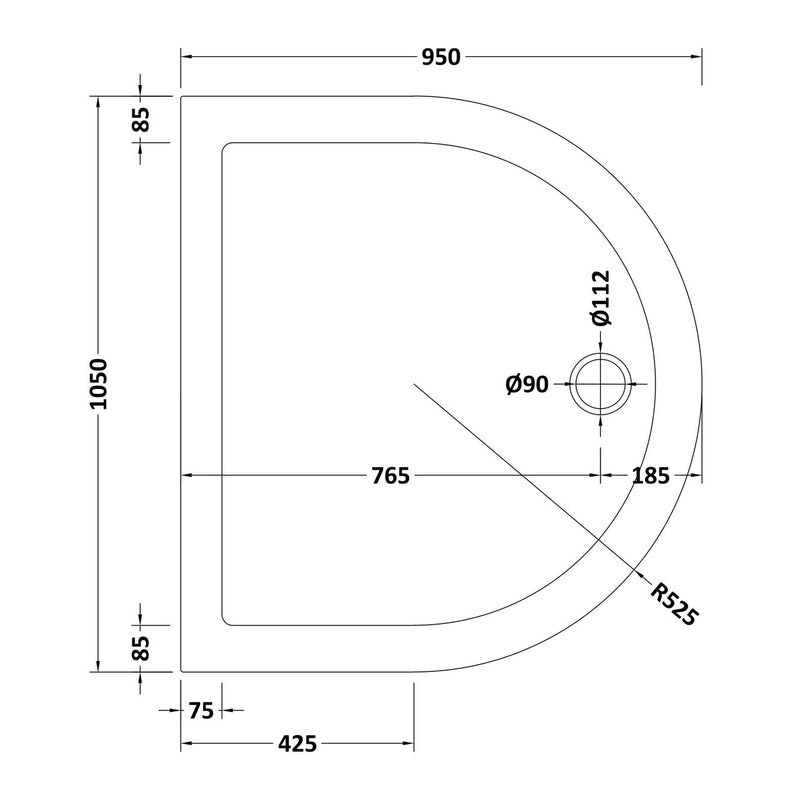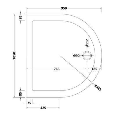 Nuie Pearlstone D Shape Gloss White Stone Resin Shower Tray - 1050 x 950mm