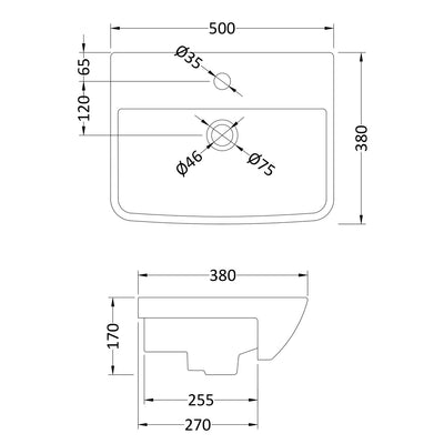 Nuie Semi Recess Basin With Overflow 500 x 380mm - White