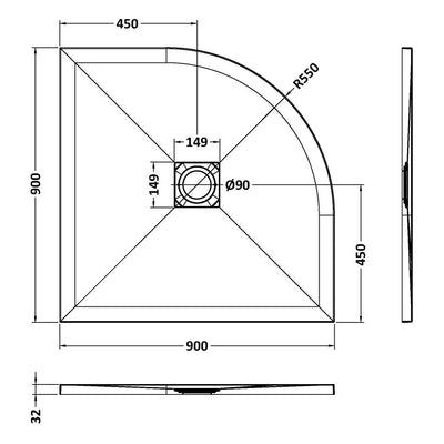 Nuie Slimline Grey Slate Quadrant Shower Tray