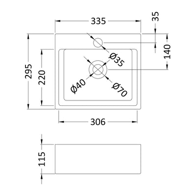 Nuie Vessel Square Basin Without Overflow 335 x 295mm - White