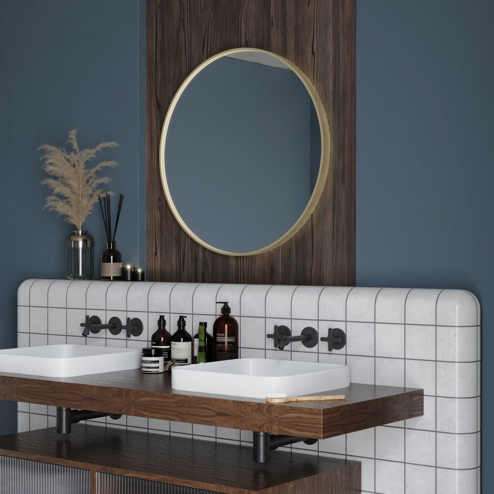With a choice of striking circular, arched or capsule forms, the Origins Living Lomax mirror collection oozes stylish confidence. It is available in matt black or brushed brass finishes and an LED-backlit option that will illuminate your bathroom.