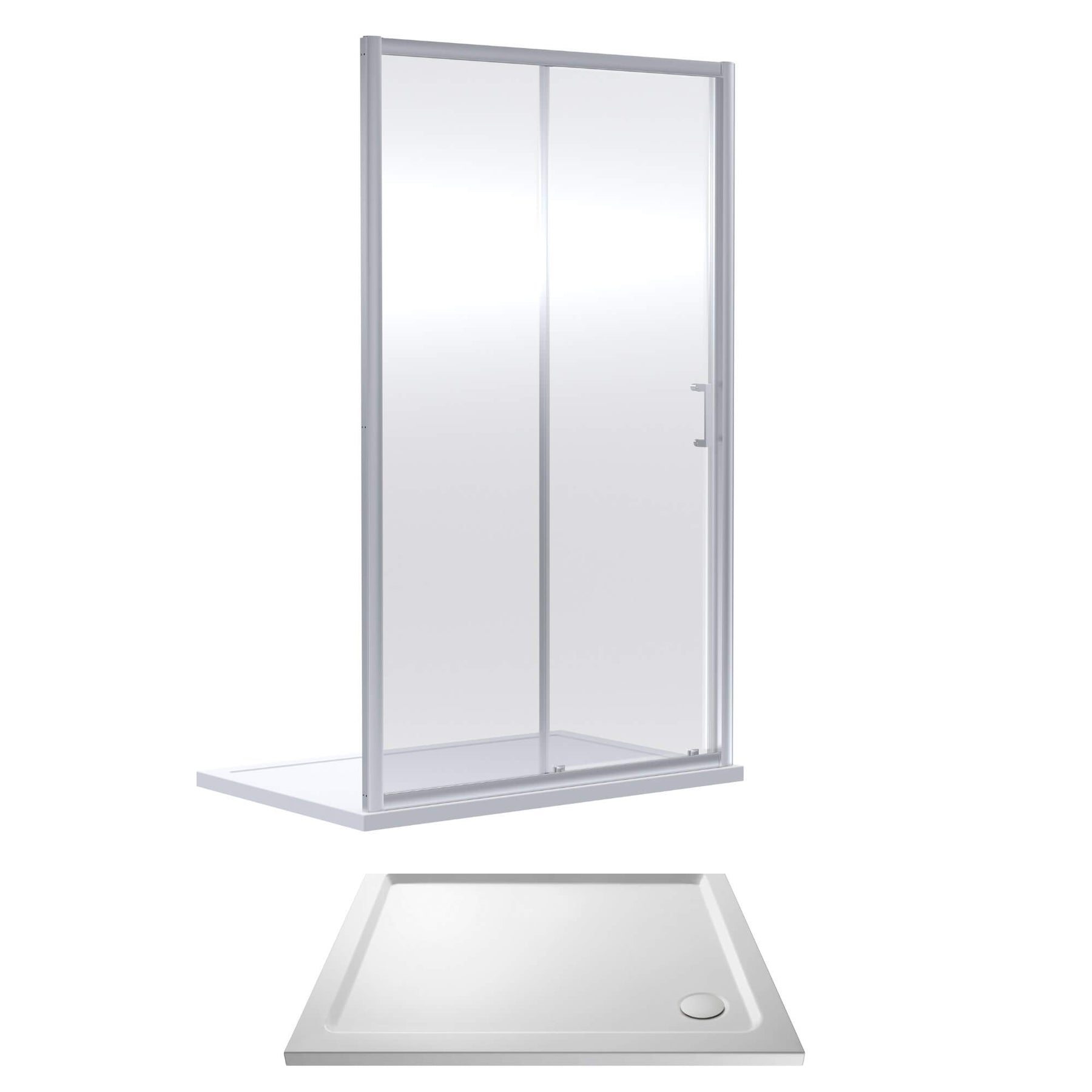 Porto Chrome 6mm Sliding Shower Door With White Stone Resin Tray & Waste - 1200 x 700mm