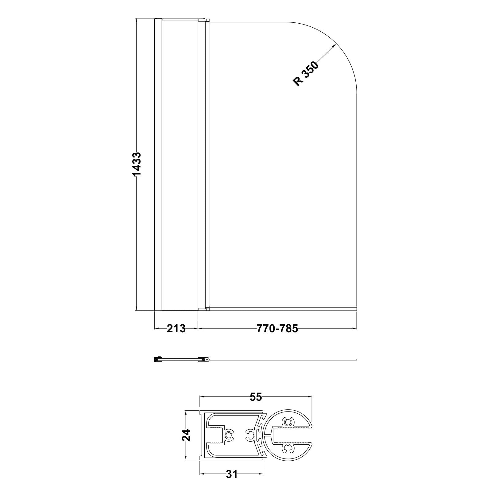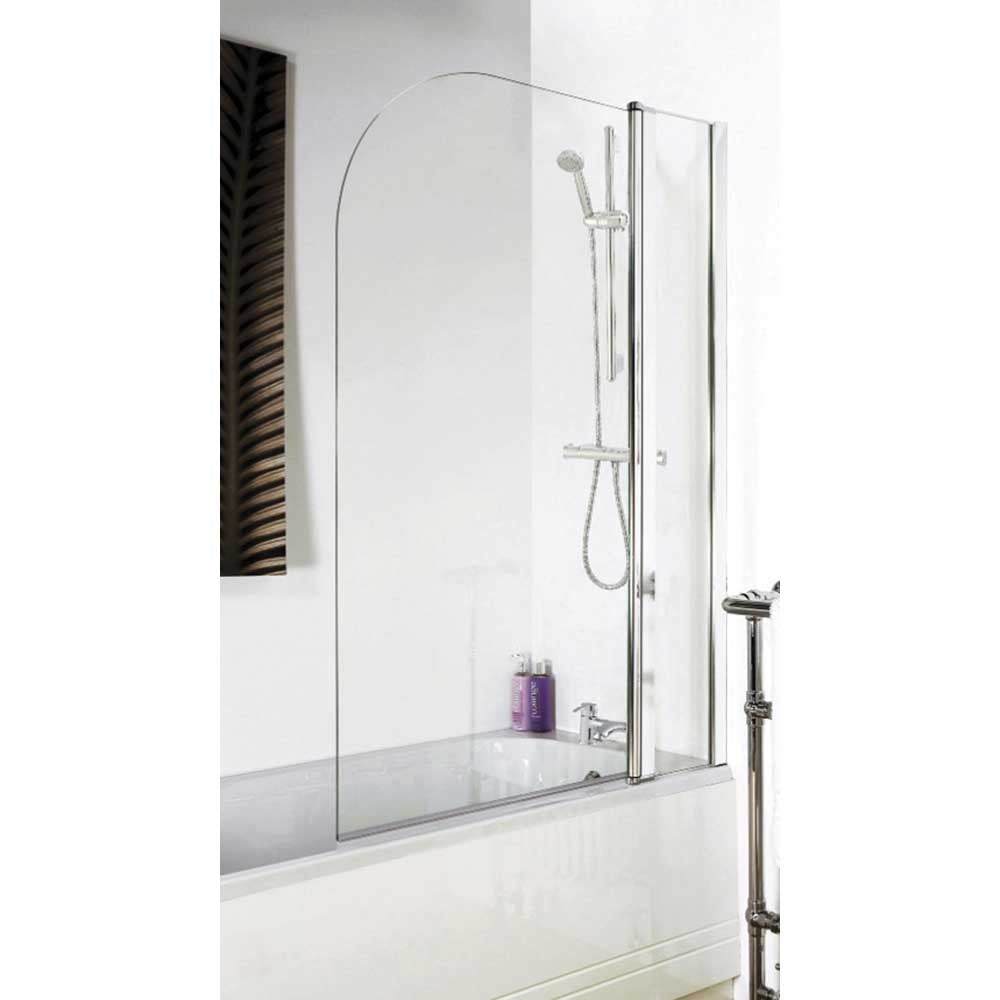This elegant rounded bath screen offers great protection from water spray when fitted to a bath with a shower and has a chrome profile that will look great in most bathrooms. The screen features a fixed first panel with a hinged larger panel that can open both inwards and outwards for easy access. The screen has a reversible design so you can fit it left or right handed and features 6mm thick toughened safety glass.