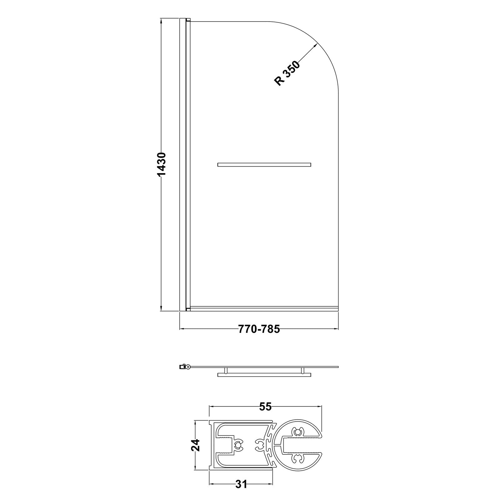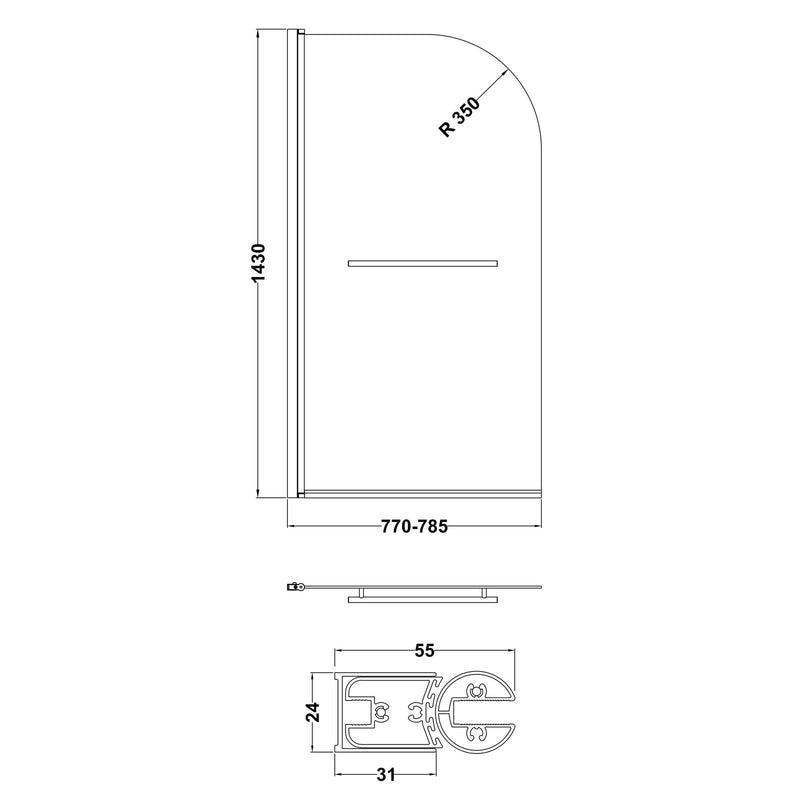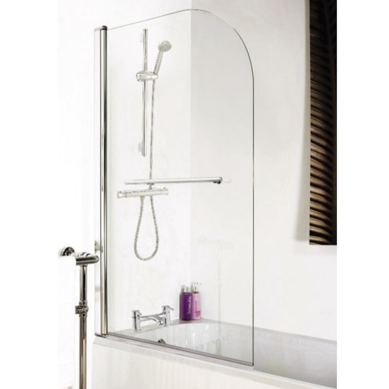 This simple and attractive bath screen offers great protection from water spray when fitted to a bath that you are installing a shower over. It has a classic rounded deign, complimented by a chrome profile that is hinged to allow the bath screen to open both inwards and outwards, making it very easy to use. The screen has a reversible design so you can fit it left or right handed and features 6mm thick toughened safety glass. The screen also includes a chrome towel rail that is handy for keeping your towel within easy reach when using the bath.