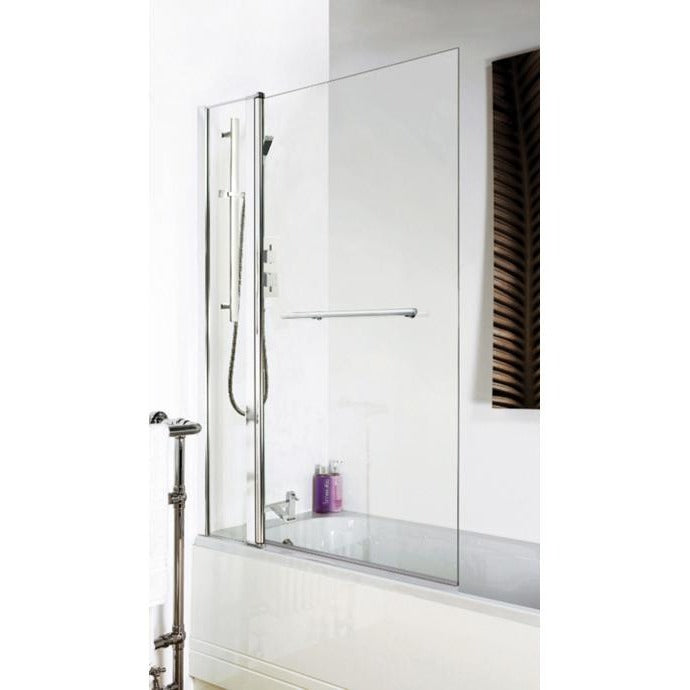 Porto Square Hinged 6mm Bath Screen With Fixed Panel & Towel Rail 1005mm