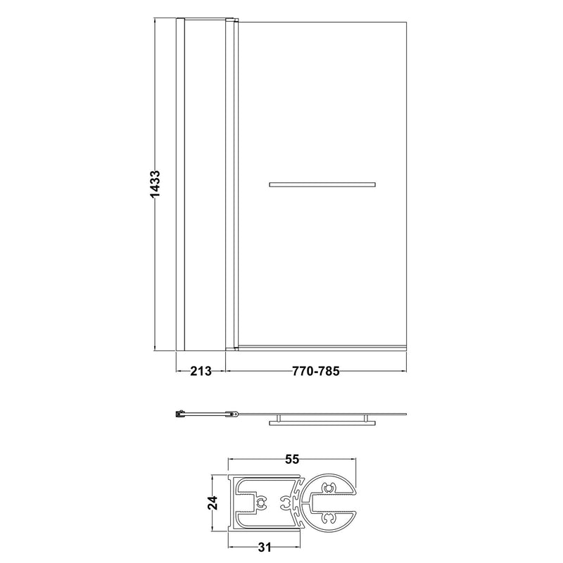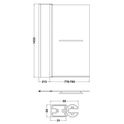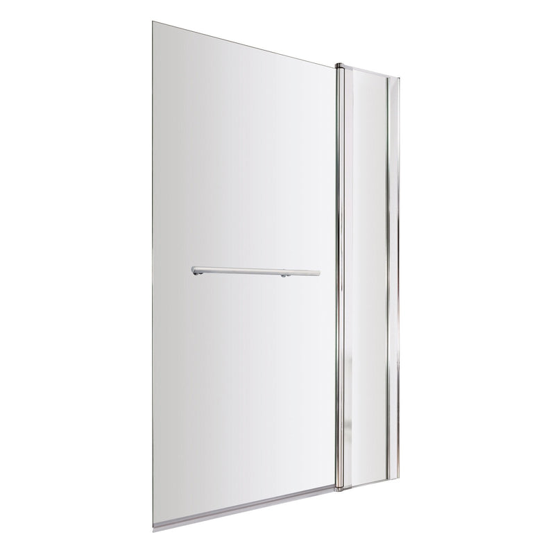 This modern square bath screen offers great protection from water spray when fitted to a bath with a shower and has a chrome profile that will look great in most bathrooms. The screen features a fixed first panel with a hinged larger panel that can open both inwards and outwards for easy access. The screen has a reversible design so you can fit it left or right handed and features 6mm thick toughened safety glass. It also features a chrome towel rail on the outside, providing a useful place to keep your towel when using the bath.