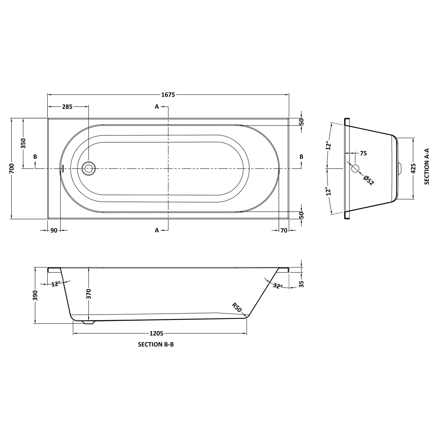 Made from high-quality acrylic, this bath offers excellent heat retention and durability, ensuring long-lasting performance. The single-ended layout features a sloped backrest for a comfortable recline, while the waste and overflow are conveniently positioned at the opposite end. Its 1675 x 700mm size makes it a versatile choice, fitting effortlessly into standard UK bathrooms without compromising on internal space.