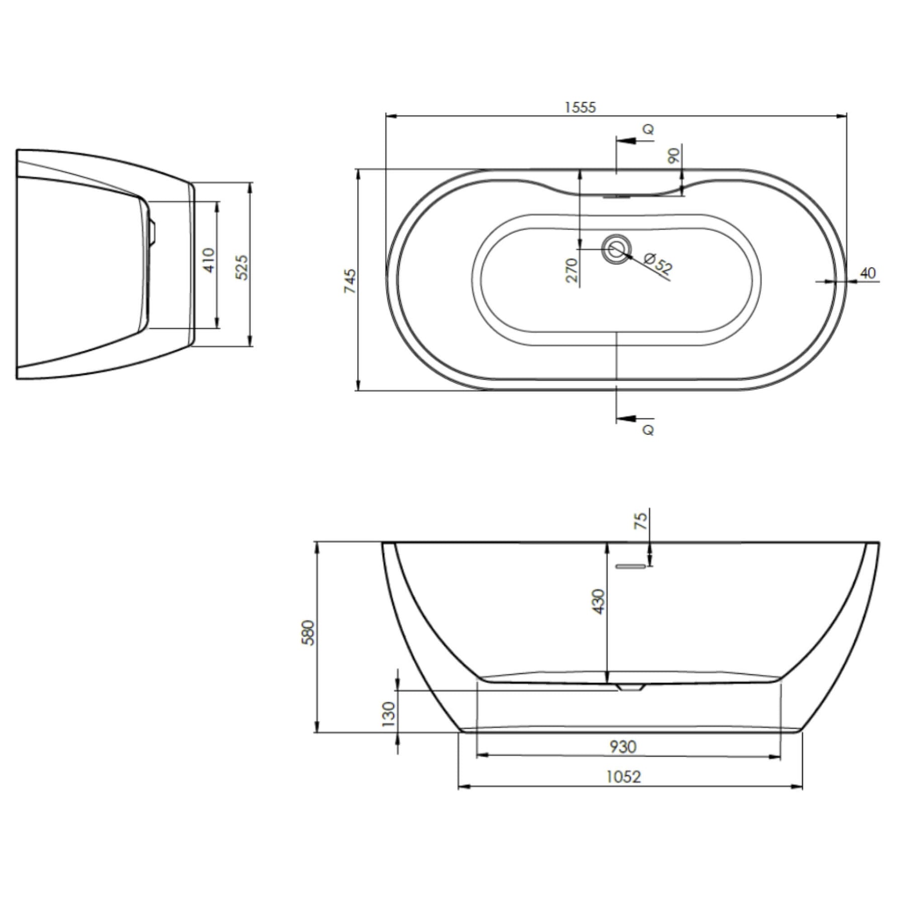 Senna Freestanding Bath 1555 x 745mm - White