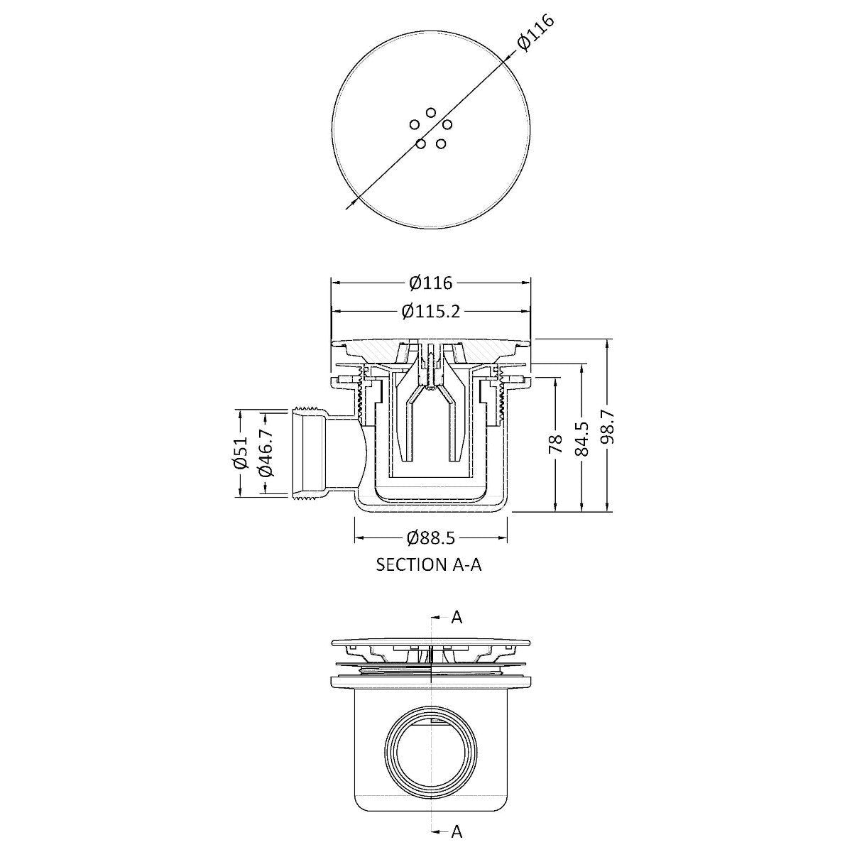 90mm Fast Flow Shower Tray Waste - White & Brushed Brass
