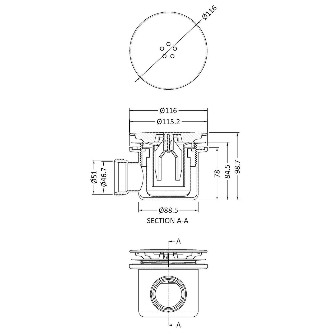 90mm Fast Flow Shower Tray Waste - White & Brushed Brass