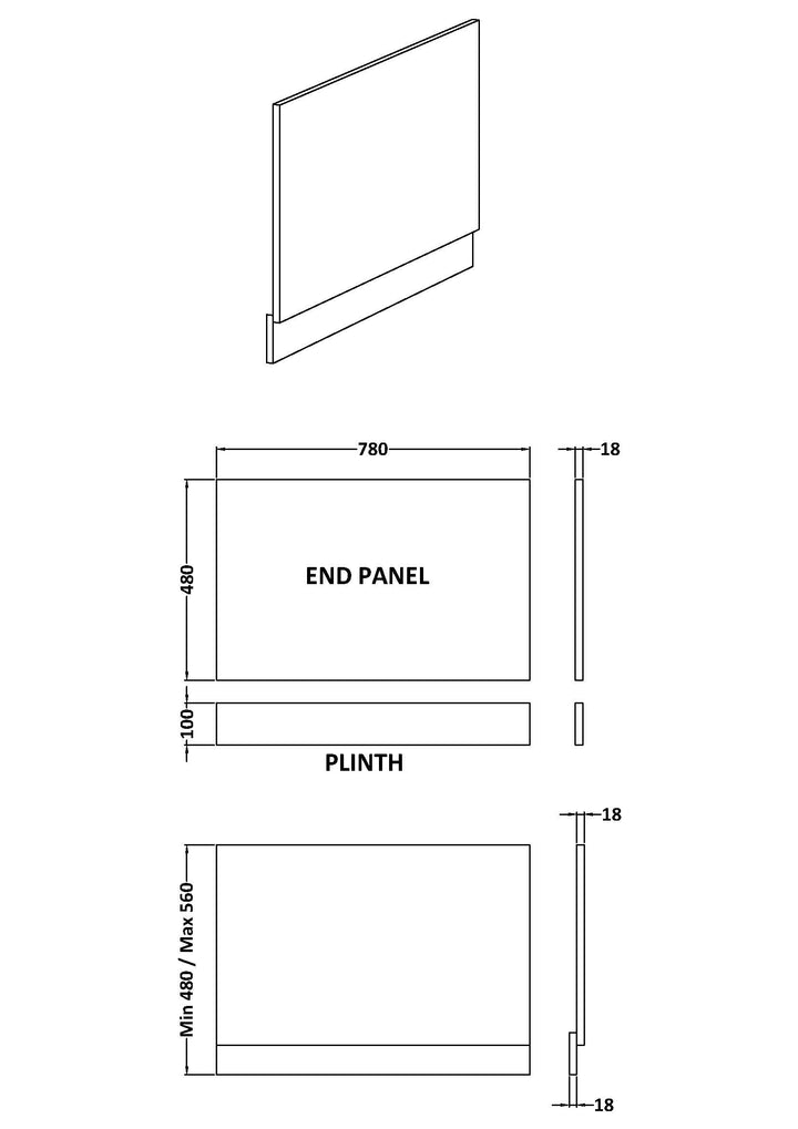 Hudson Reed bath panels can be used to easily complete your bath installation, whilst matching colours from within their extensive furniture collection. This 800mm end panel is for use with straight baths and comes with a plinth to provide height adjustment from 480-550mm. The 18mm thick wooden panel is water resistant to help prevent damage from water spray or drips. This is an end panel only, for use with a matching side panel when installing a bath into a corner. Hudson Reed provide a 5 year manufacturer guarantee on their bath panel collection.