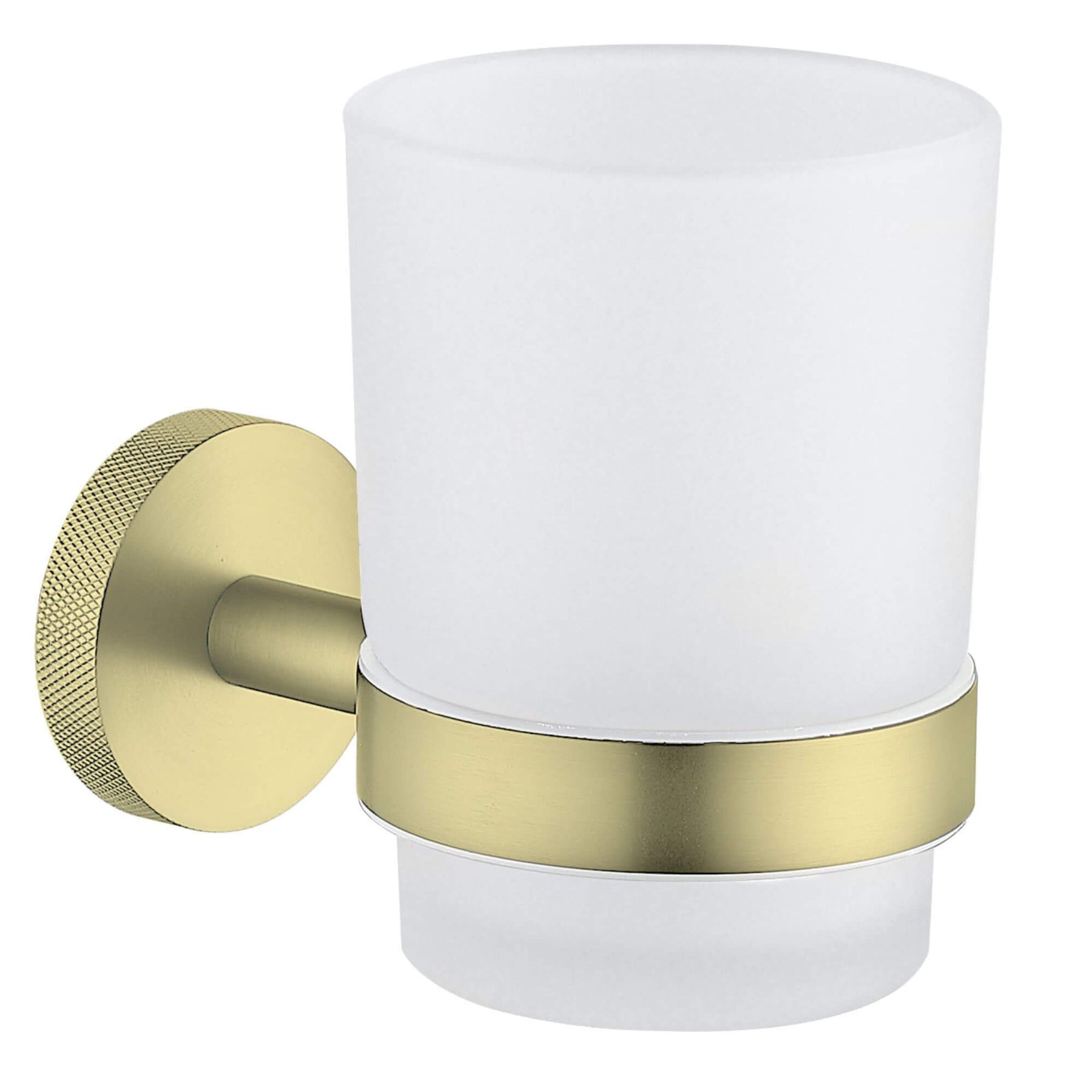 Lux Knurled Toothbrush Tumbler and Holder - Brushed Brass