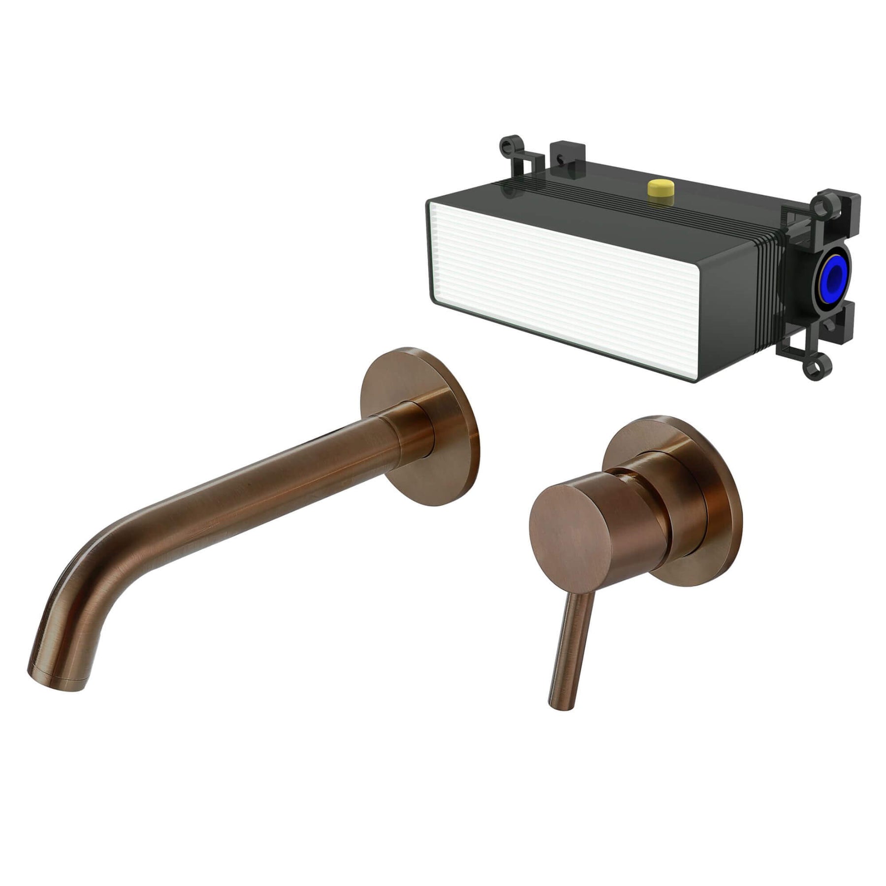 Lux Wall Mounted 2 Hole Basin Mixer - Brushed Bronze