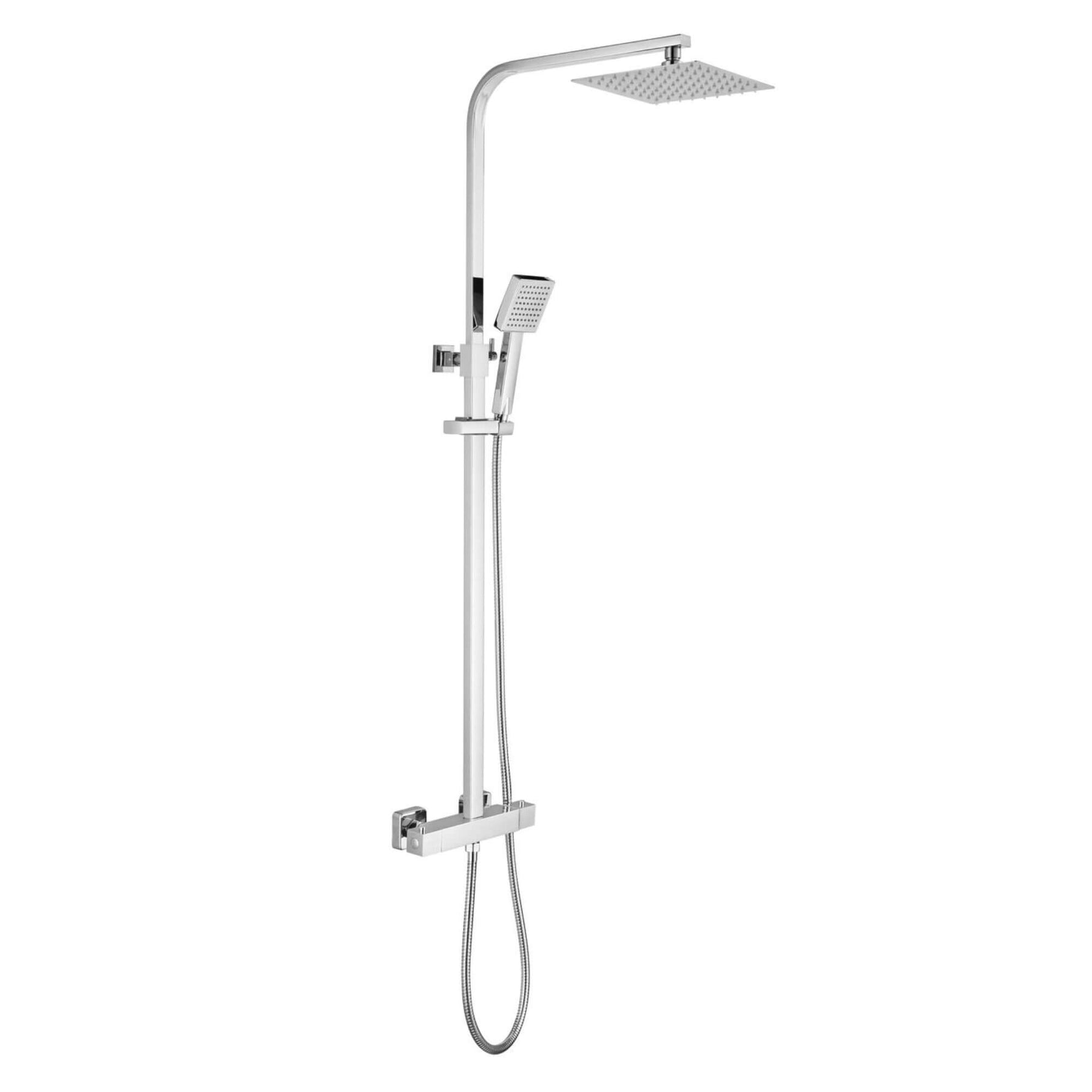 Lux Square Exposed Thermostatic Shower With 200mm Slim Overhead & Slide Rail Kit - Chrome