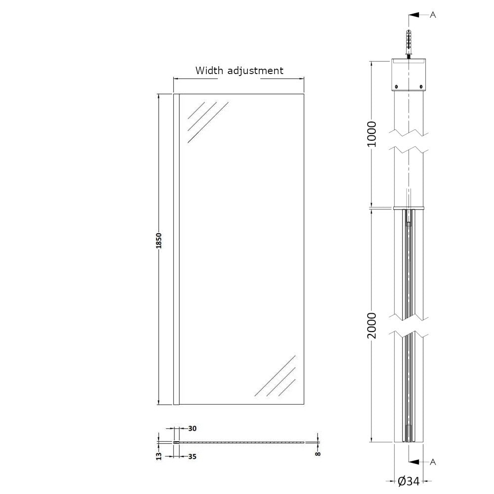 Create a stunning and functional showering space with the Vista wetroom shower screen. This minimalist glass screen is made from 8mm thick toughened safety glass and will work equally well in a walk in shower enclosure or a wet room installation as it can be fitted to a shower tray or directly onto tiles. The screen features a polished chrome profile and comes complete with a 3000mm chrome ceiling support post that can be trimmed down to your requirements. You can fit the Vista wetroom screen either left or right handed due to its reversible design and it comes in range of sizes.