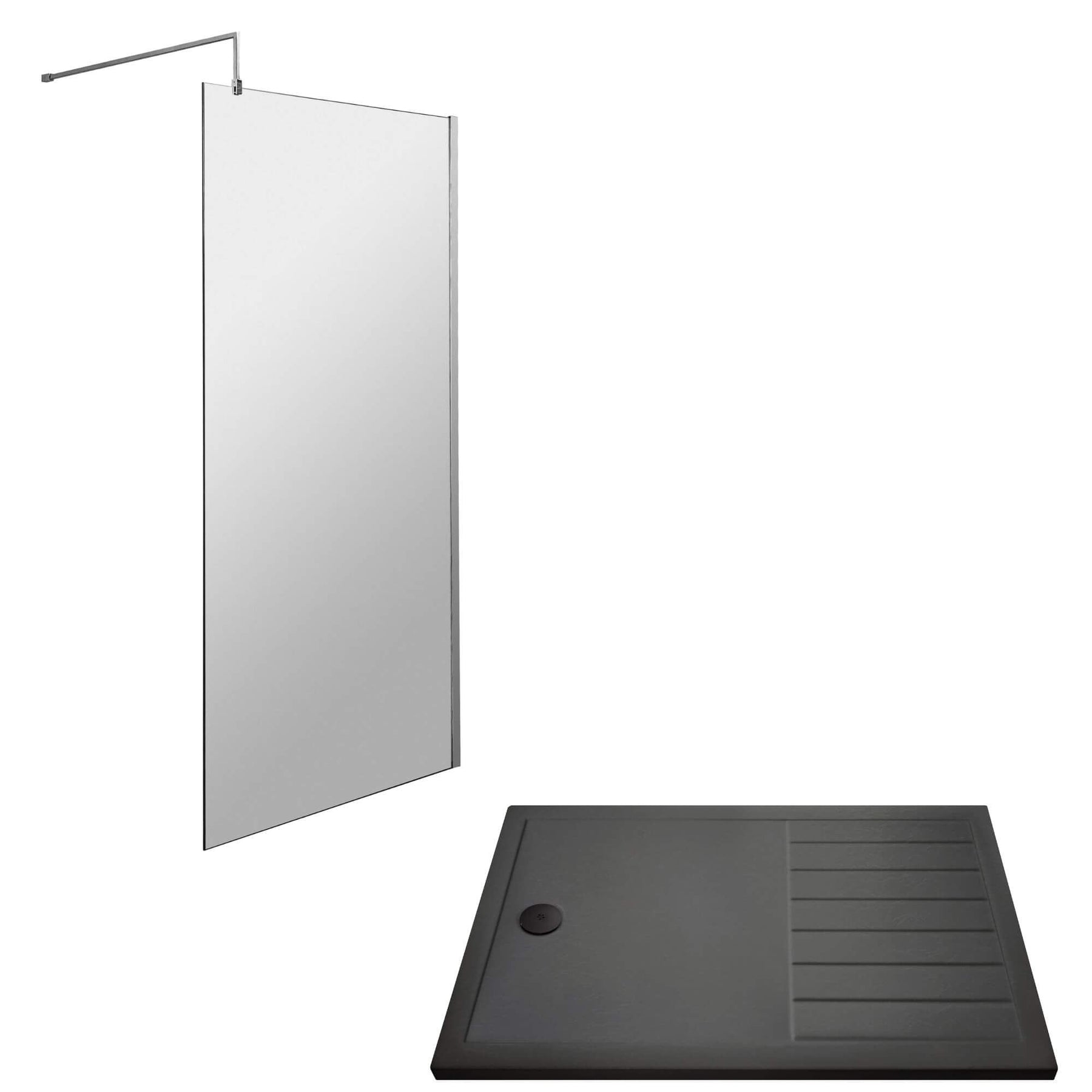 Vista 8mm Chrome 1950mm Walk-In Shower Screen with Slate Effect Walk In Tray & Waste Bundle